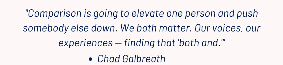 "Comparison is going to elevate one person and push somebody else down. We both matter. Our voices, our experiences — finding that 'both and.'"