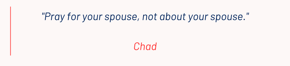 - When you pray about your marriage, are you praying for your spouse or about your spouse? What's the difference in how those two prayers feel?